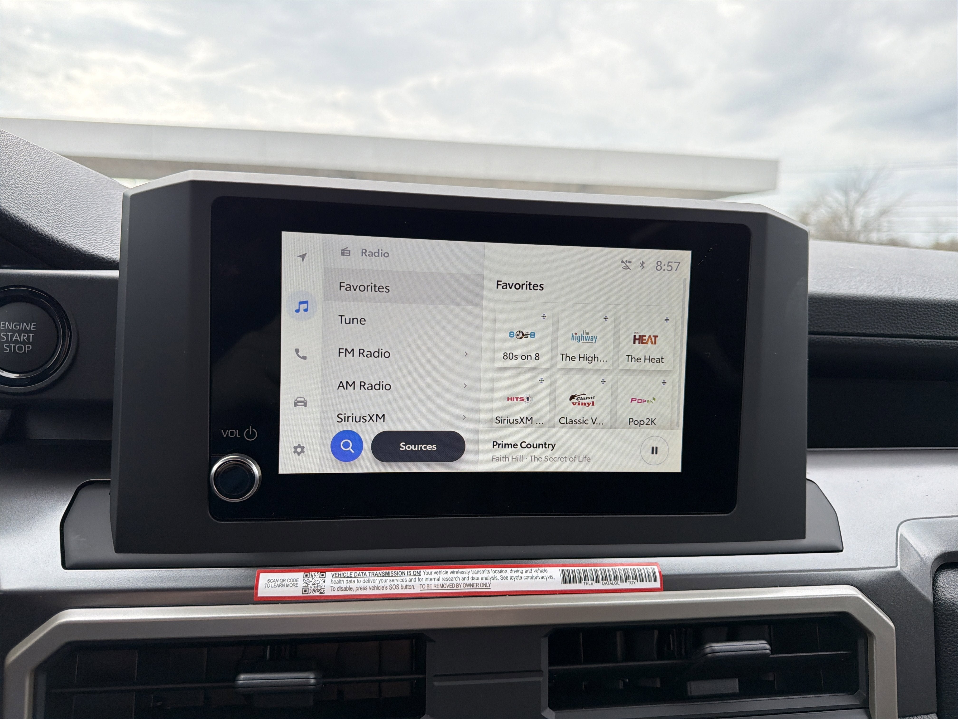 - 8-in. Toyota Audio Multimedia display with 6-speaker audio system, wireless Apple CarPlay® [carplay_wireless] & Android Auto™ [android_auto_wireless] compatibility, SiriusXM® 3-month trial subscription. [siriusxm] See toyota.com/connected-services for details.