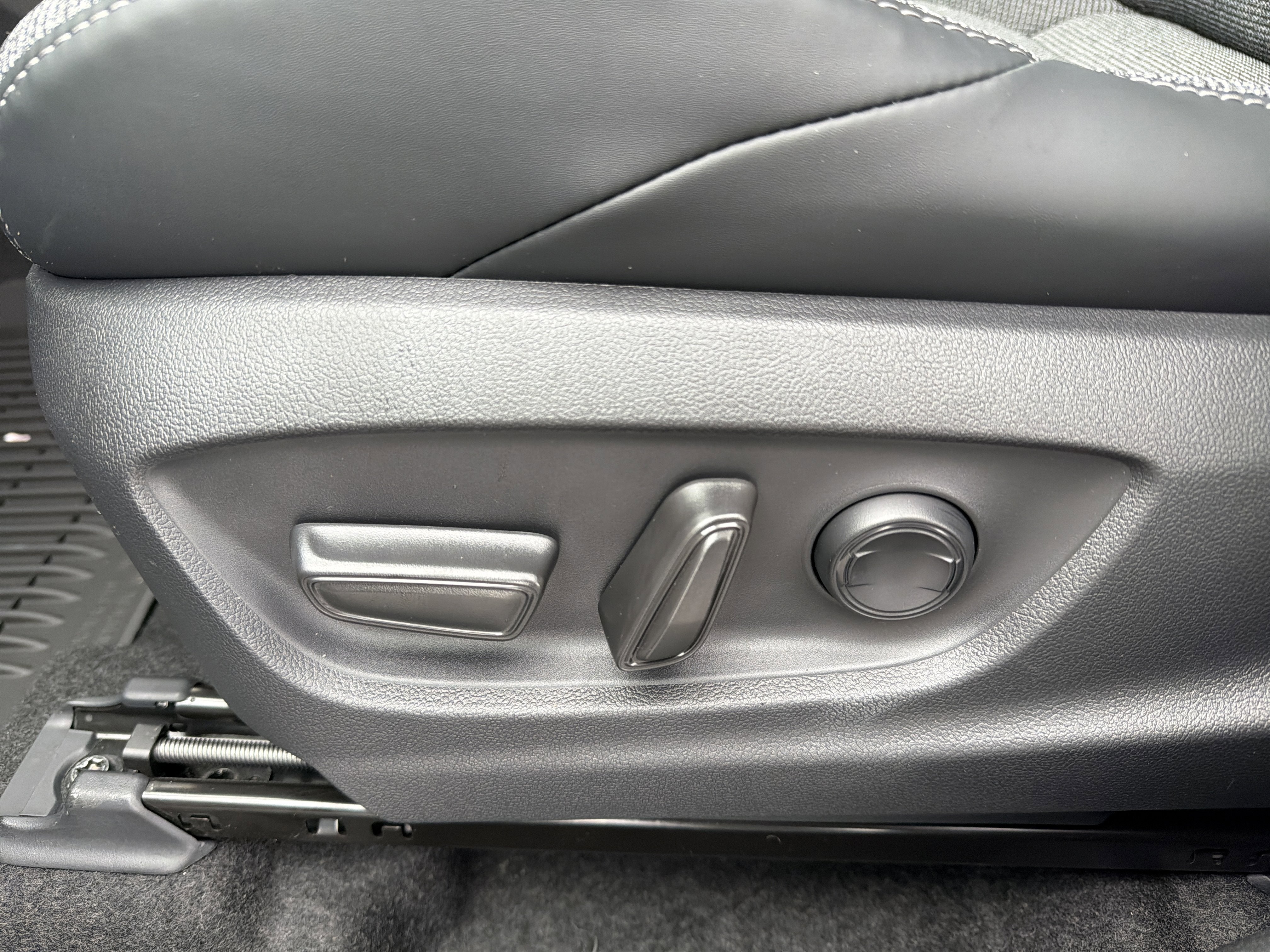 - Black carpet flooring with driver-side footrest