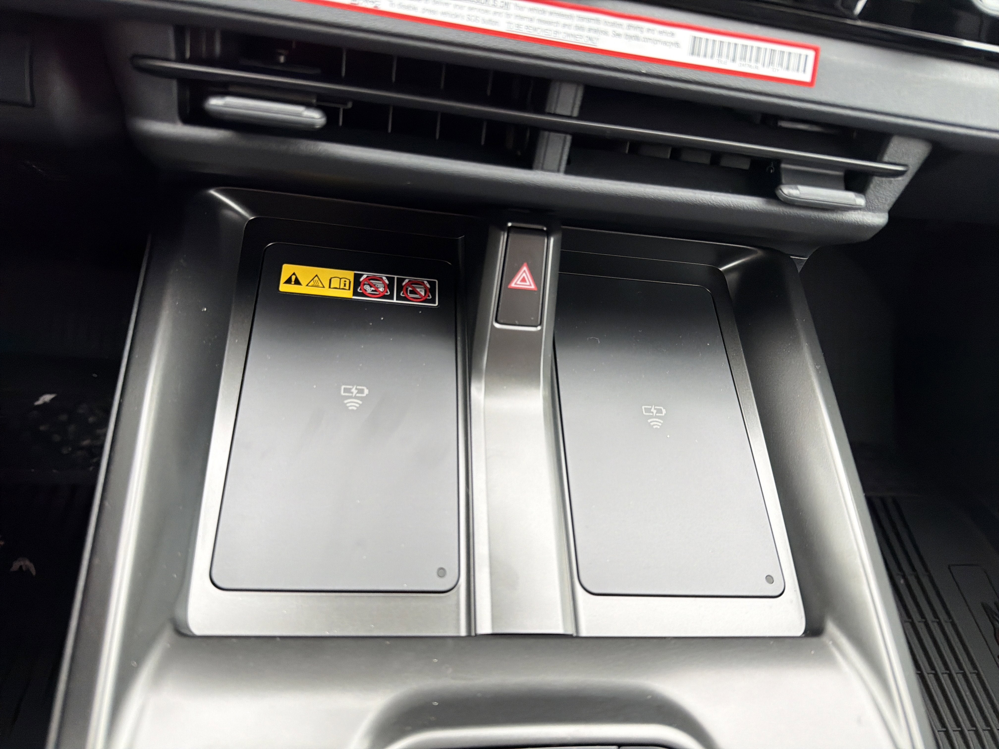 - Center console with covered storage compartment, two cup holders, two Qi-compatible wireless chargers [qi_wireless] and front lower storage tray