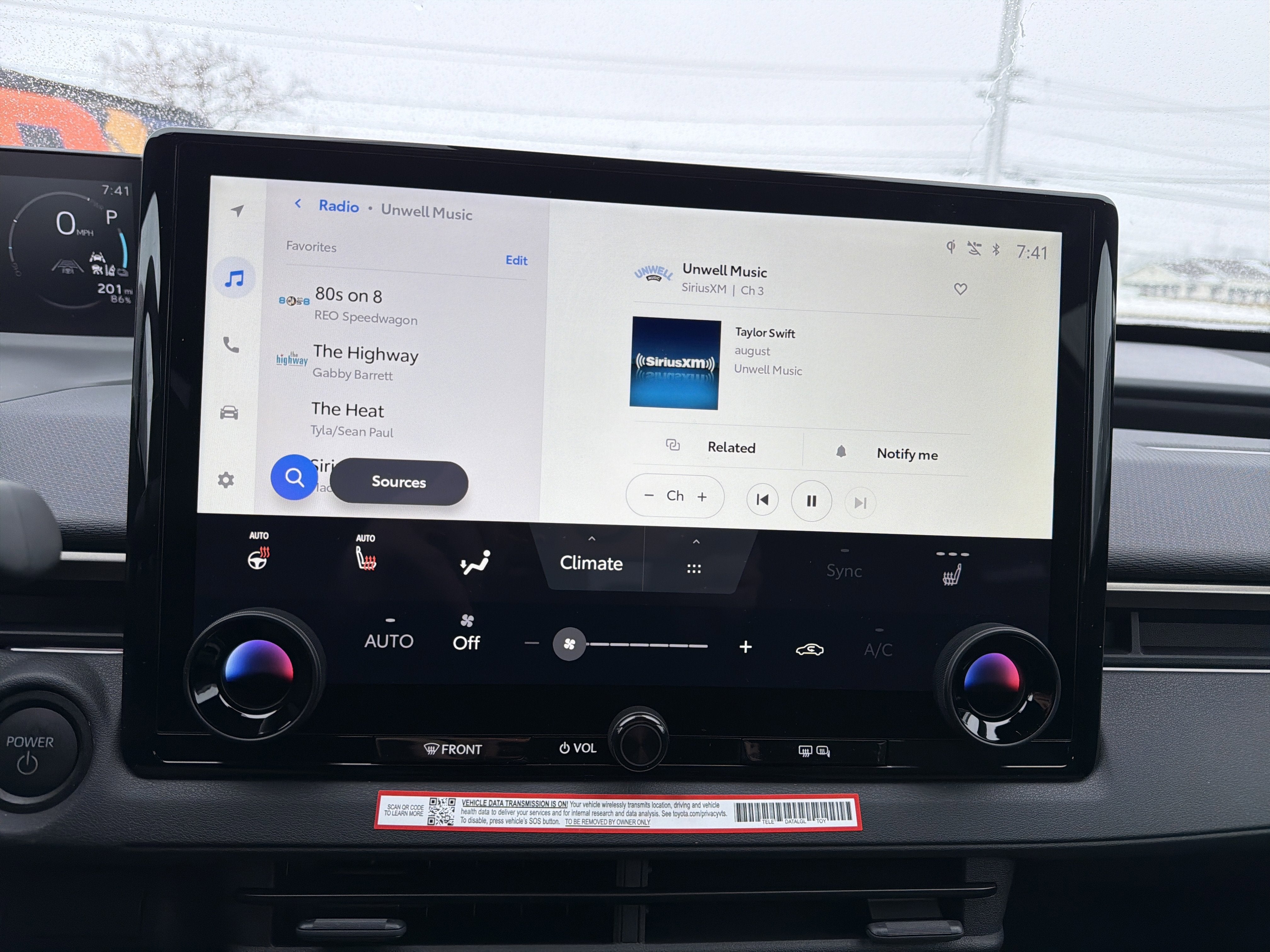- 14-in. Toyota Audio Multimedia with six speakers, wireless Apple CarPlay® [carplay_wireless] & Android Auto™ [android_auto_wireless] compatibility, SiriusXM® 3-month trial subscription. [siriusxm] See toyota.com/connected-services for details.