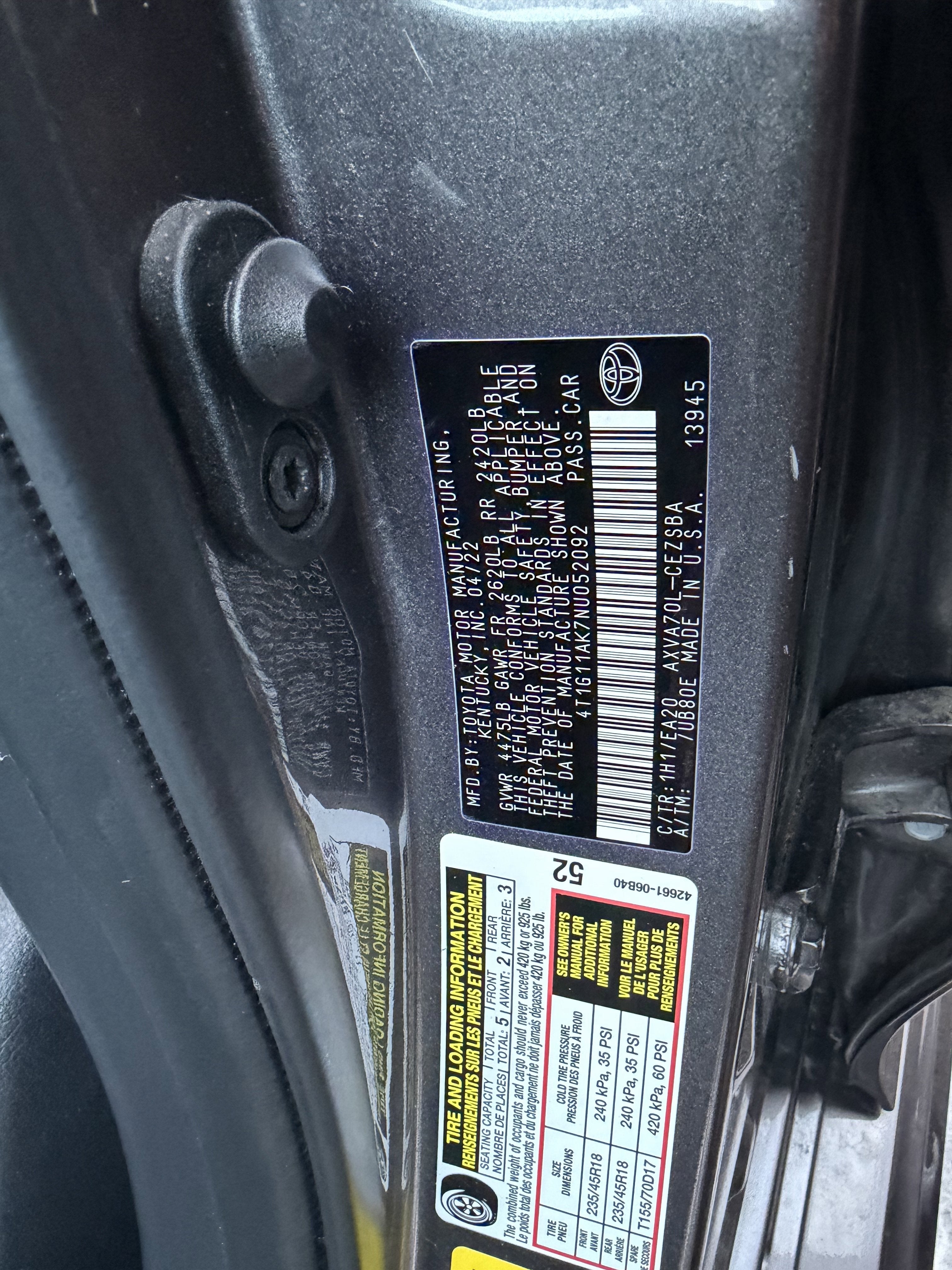 - Vehicle Name: Toyota Camry