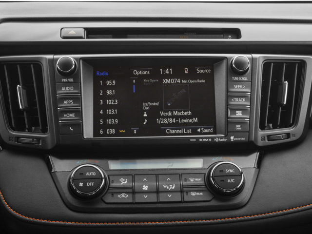 - Radio: Entune Audio Plus AM/FM/MP3/WMA Playback -inc: CD player, Entune App Suite, 6 speakers, HD Radio w/iTunes tagging, HD Traffic and Weather, SiriusXM Radio w/90-day trial, 6.1" touch-screen w/integrated back-up camera display, auxiliary audio jack, USB port w/iPod connectivity and control, vehicle information w/customizable settings, hands-free phone capability, phone book access and music streaming via Bluetooth® wireless technology