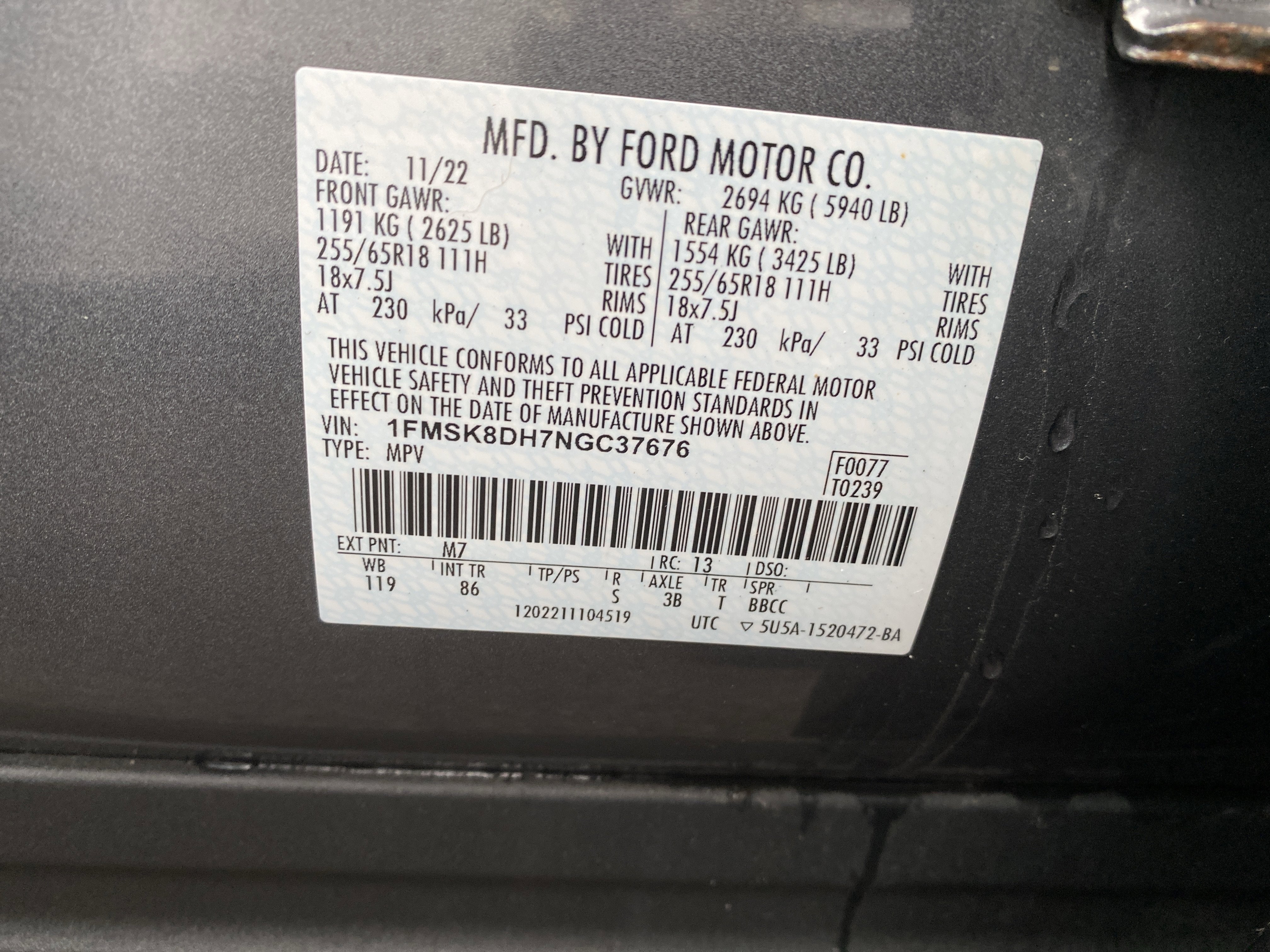 - Tires: P255/65R18 AS BSW -inc: mini spare
