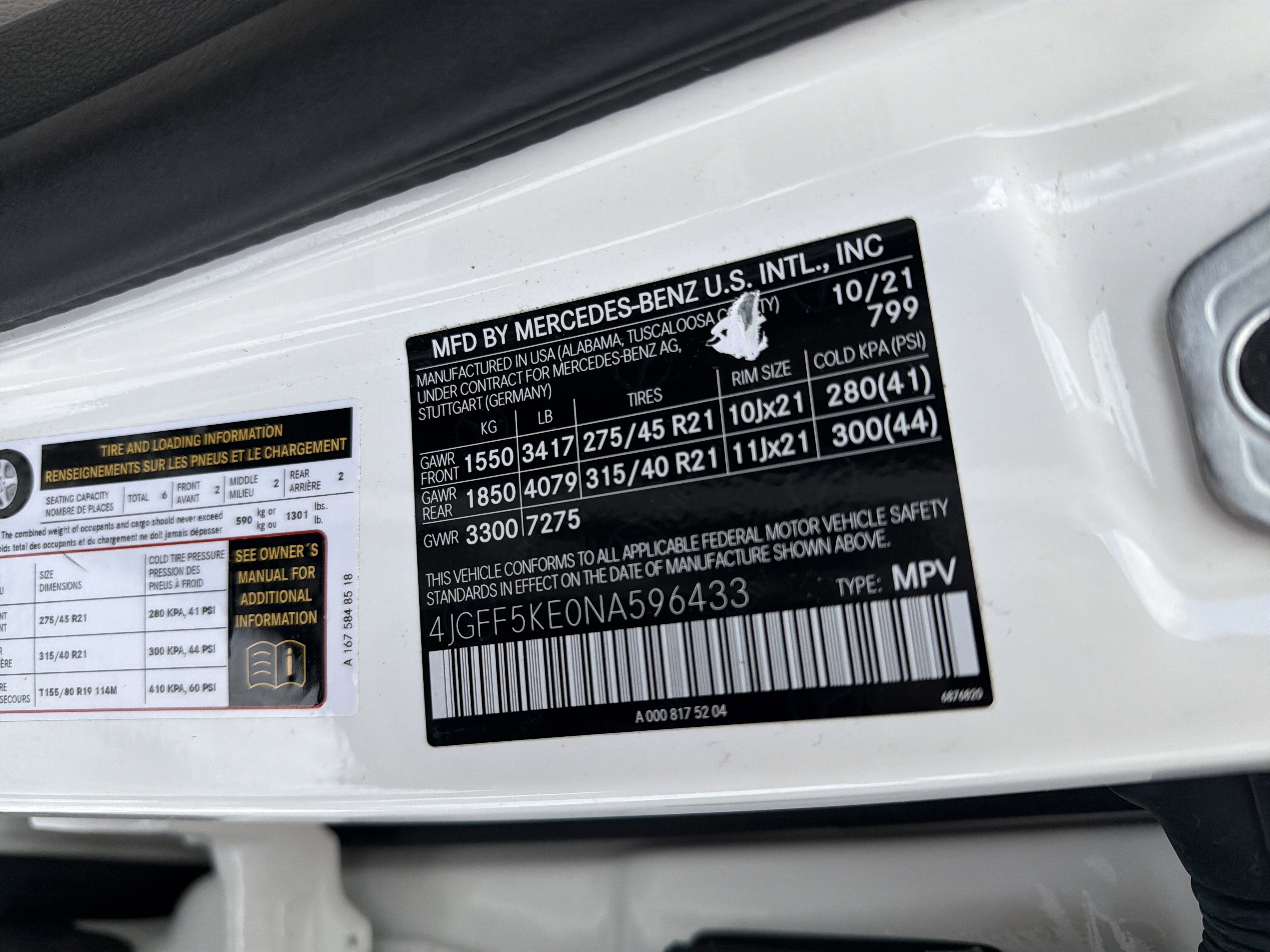 - Front Tire Size: P275/45HR21