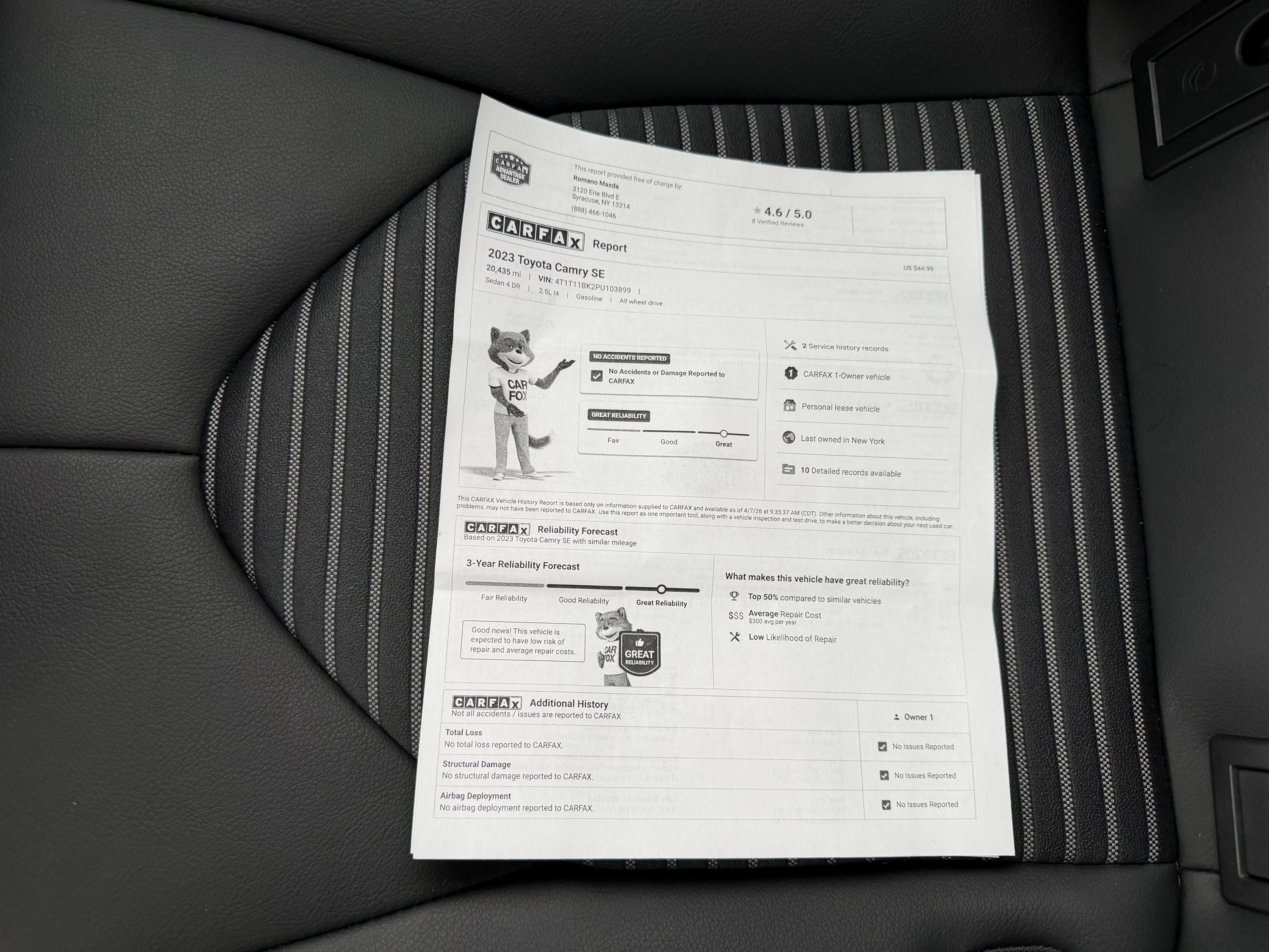 - Vehicle Name: Toyota Camry