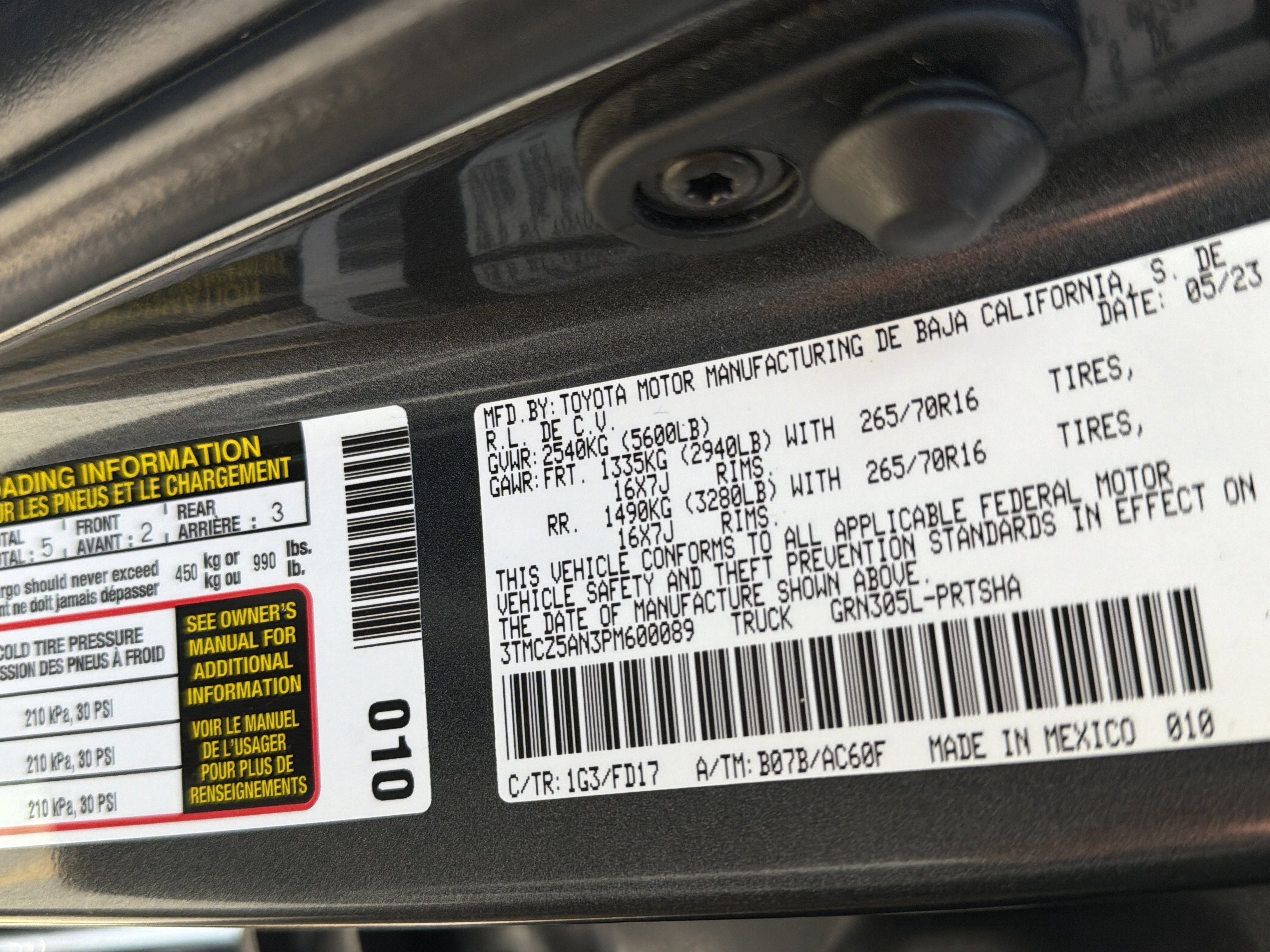 - Vehicle Name: Toyota Tacoma 4WD