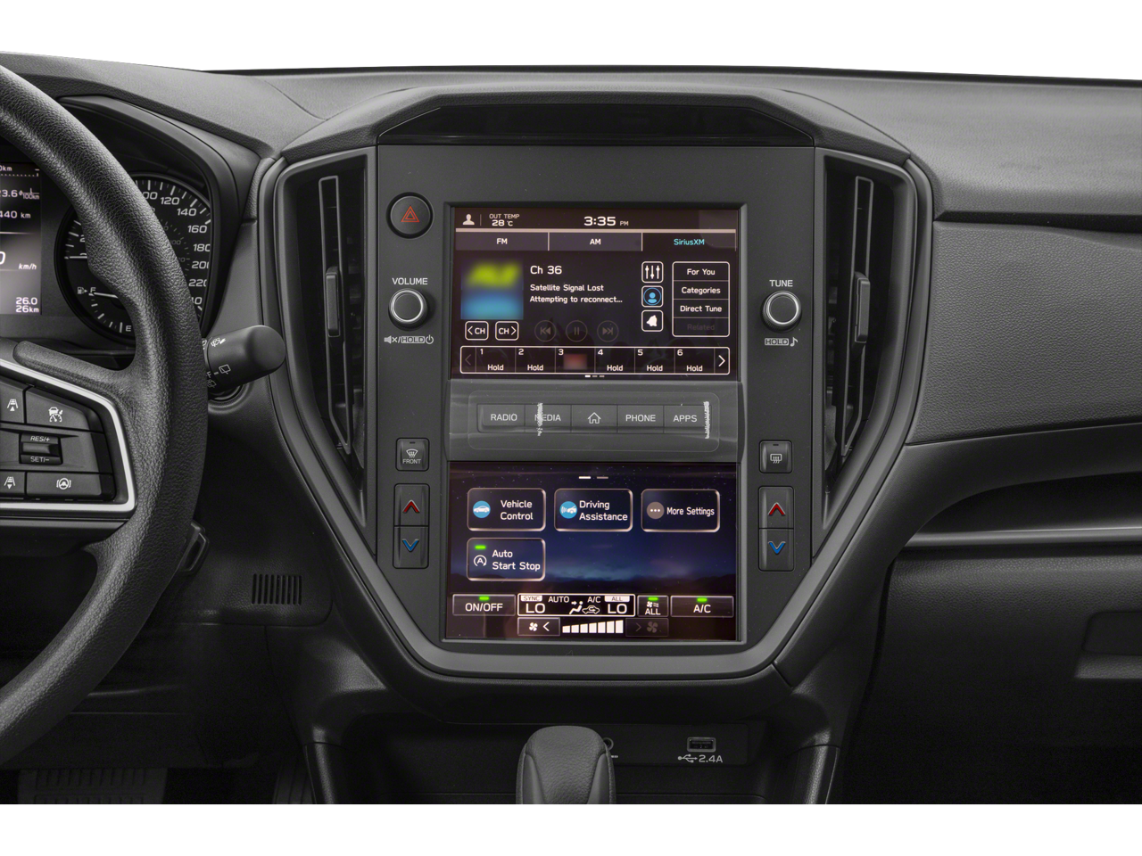 • Radio: Subaru STARLINK Dual 7.0" Multimedia System -inc: AM/FM stereo, multi-touch gesture high resolution display screen, voice activated controls, Bluetooth® audio streaming and hands-free phone connectivity, Bluetooth® hands-free SMS text messaging connectivity, iPod control capability, rear-vision camera display, SiriusXM All Access radio (4 months free trial/subscription required after), SiriusXM Travel Link (4 months free trial/subscription required after), smartphone integration: Android Auto, Apple CarPlay, USB audio system update, 4 speakers, illuminated 3.5mm auxiliary input jack, illuminated USB A input charge port and roof mounted black antenna