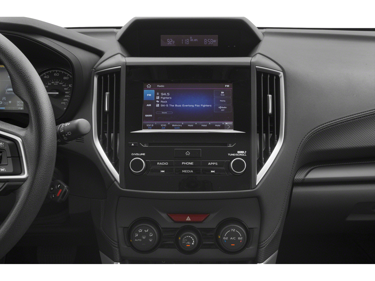 • Radio: Subaru Starlink 6.5" Multimedia Plus System -inc: AM/FM stereo HD Radio w/single-disc CD player w/MP3/WMA/CRR/RW file capability, multi-touch gesture high resolution display, 6.5" LCD screen, Bluetooth® audio streaming connectivity and hands-free phone connectivity, iPod control capability, rear-vision camera display, SiriusXM All Access radio and Travel Link (subscription required), smartphone integration: AHA, Android Auto, CarPlay and Pandora, Starlink cloud applications: refer to subaru.com for app availability, dual USB port, 3.5mm auxiliary input jack, 6 speakers and body color roof mounted antenna