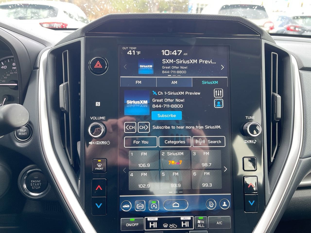 - Radio: Subaru STARLINK 11.6" Multimedia Plus Sys -inc: valet mode, AM/FM stereo, HD Radio, multi-touch gesture high resolution display screen, voice activated controls, Bluetooth® audio streaming and hands-free phone connectivity, Bluetooth® hands-free SMS text messaging connectivity, iPod control capability, rear-vision camera display, SiriusXM All Access radio (4 months free trial/subscription required after), SiriusXM Travel Link (4 months free trial/subscription required after), smartphone integration: Android Auto, Apple CarPlay, STARLINK cloud applications, 6 speakers, 3.5mm auxiliary input jack, illuminated/dual USB A and C input charge ports, roof mounted antenna and audio/satellite connected services
